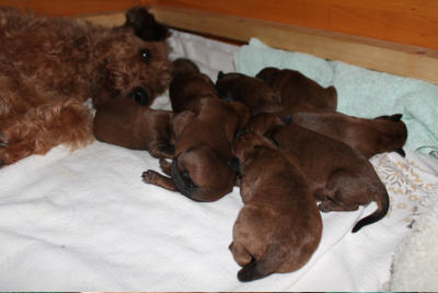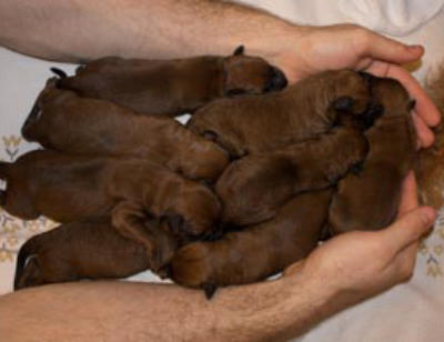 Wir sind 8 propere, putzmuntere und nimmer satte Hundekinder (6 Jungs und 2 Mädchen), die sehnsüchtig erwartete Folge der